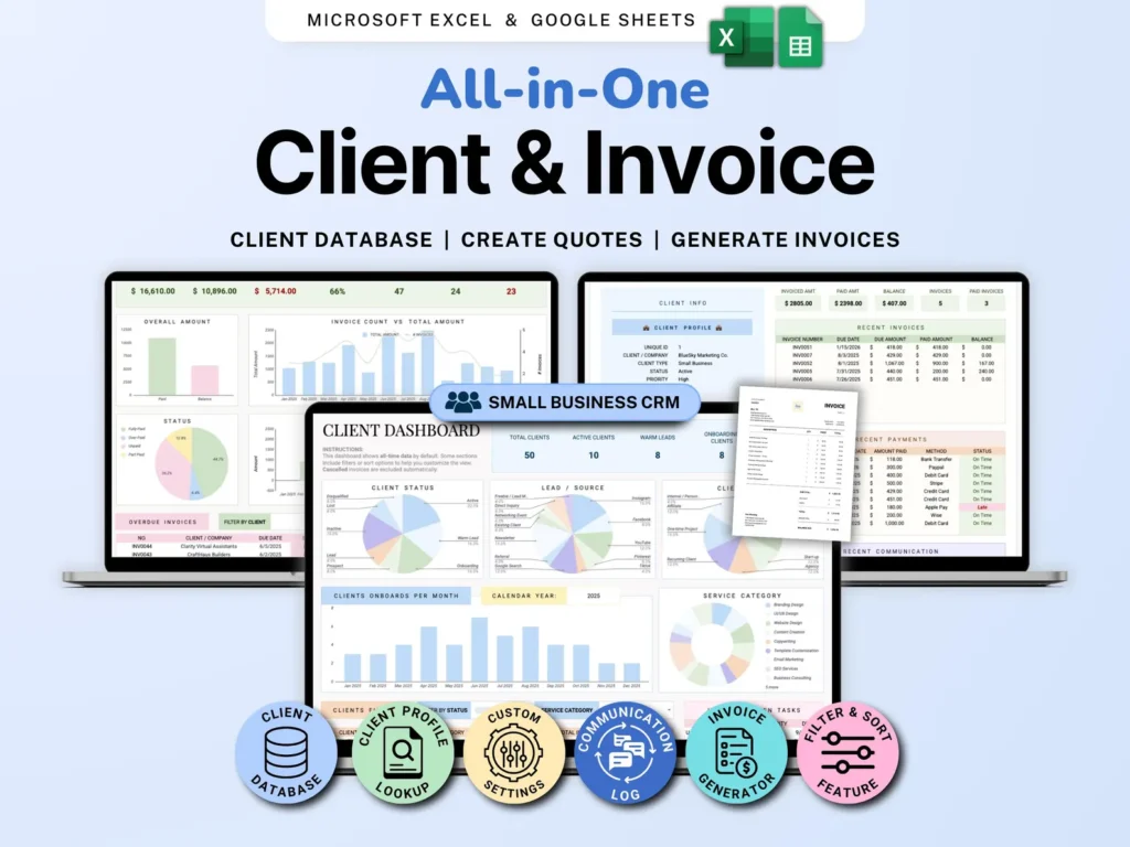 ✅ Stunning & Functional: Pre-built dashboards, charts, trackers, and tables that make data easy to analyze and present.
